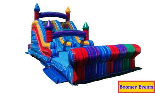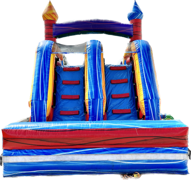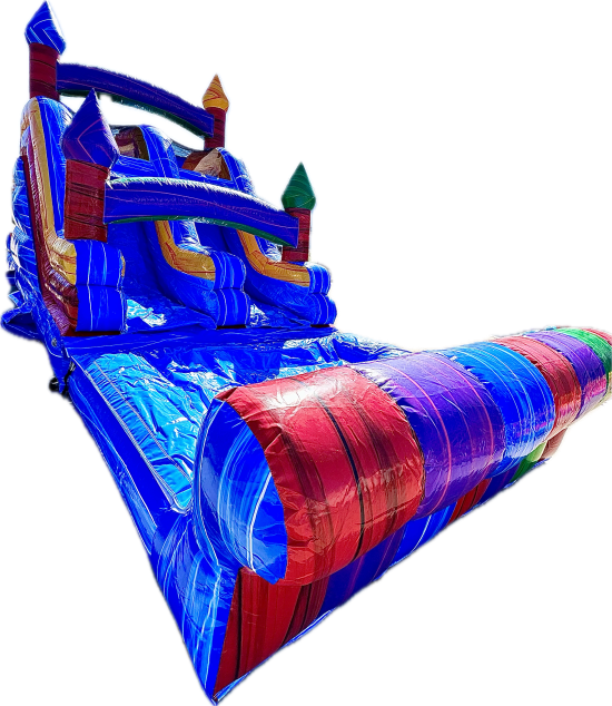 Description: This is our 16 ft. Double Lane Marble Slide! It can be used wet or dry! Perfect for hot summer days. It has a double lane slide decorated with fun marble textured colors, that will make your kids love this item! It's appropriate for children 5 years old and up. The bottom portion of this slide can be removed so the landing goes into an underground pool. Please let us know preference upon ordering. If used wet, there will be an additional charge of $50. Please make sure to use to item properly and follow safety rules listed two paragraphs below.