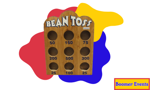 In this game, the player tosses a bean bag into any one of the holes to earn the amount of points listed! |