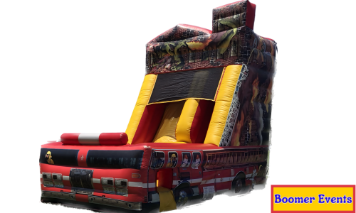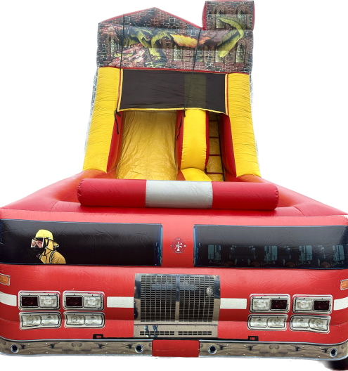 This is our 18 ft. Fire Truck Slide! This is a dry only slide. This action-packed slide features photo-realistic digital artwork and is sure to thrill any wannabe firefighter. It has 1 slide lane and 1 climbing lane and is ideal for outdoor rentals and events. Heat things up at your next kid's party with the incredible and realistic Fire Truck Slide! It has a 14' single lane slide that all the kids will absolutely enjoy. Watch them as they have a blast playing out the childhood dream of being a firefighter hero. Please make sure to use to item properly and follow safety rules listed two paragraphs below.
