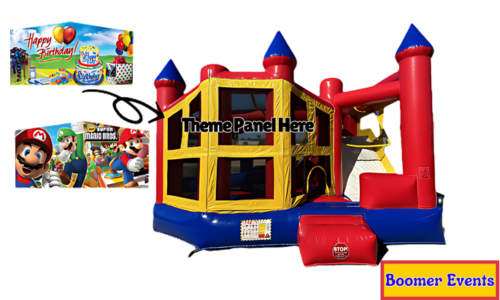 Build a snowman with your all your favorite characters from Disney's hit movie Frozen in our Frozen 5 in 1 Combo! This bounce house features Elsa, Anna, Hans, Kristoff, Sven and Olaf and is complete with a bouncing area, basketball hoop (we do not provide the basketballs ), obstacle area (inflated logs and pop ups), climber and an 8 foot slide. The slide ends next to the entrance for easy re-entry and exit. It has a mashing net on all of its sides makes it easier for parents to supervise their kids inside. Call us now and ask for availability!