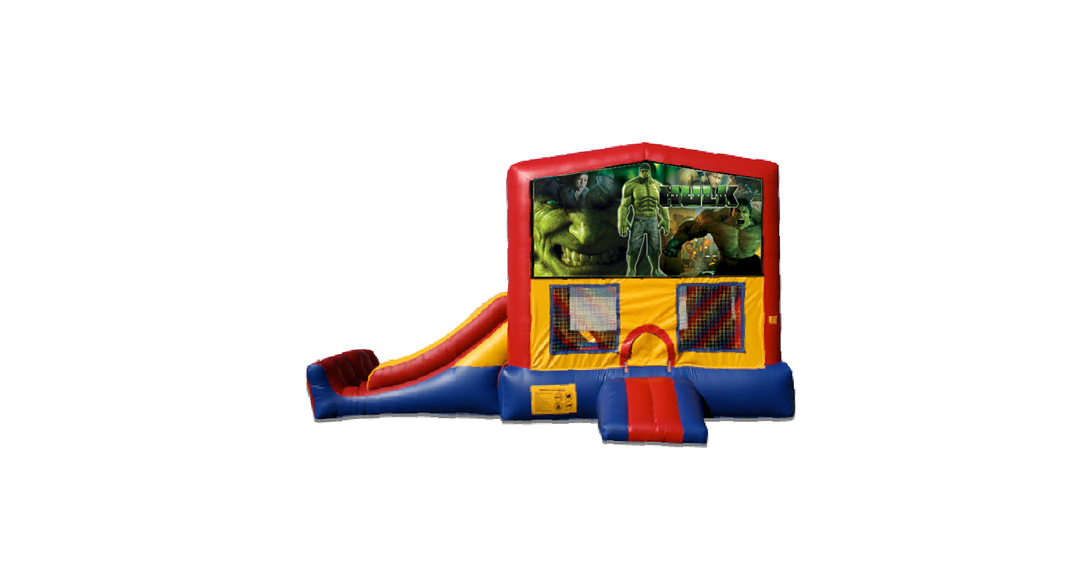 Description: This is our 3 in 1 Mini combo. It's a small combo suitable for small spaces. It has a mashing net on all of its sides makes it easier for parents to supervise their kids inside. It includes a bouncing area, a climbing and sliding area as well an inflatable basketball hoop inside (we do not provide the mini basketballs for it). You can use it wet or dry (there's an additional fee of $40 to use it wet). We can also customize the top front of the item with the various themed banners we carry. Call us now and ask for availability! You will only need a Space required of 18W x 24L x 18H feet of clearance space for this bouncer slide combo. Its actual size is 15W x 22L x 15H feet. The bounce house accommodates 8 children from 2-12 years old or 6 from 9-15 years old. It can be set up on grass, asphalt or concrete. We will need 3-4 feet in clearance and a clear path on the entrance (if the set-up is in your backyard). The slide on this item has only one lane. Please make sure it is used properly.