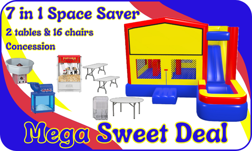 This package includes a 7 in 1 Space Saver, 2 tables & 16 chairs with any concession item |