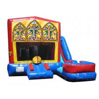 Description You will only need a Space required 24L x 20W x 18H feet of clearance space for this standard size jumpy. It's actual size is 20L x 18W x 15H feet. The bounce accommodates 8 children from 2-12 years old or 6 from 9-15 years old. It can be set up on grass, asphalt or concrete. We will need a 3-4 feet access clearance and a clear path on the entrance (if the setup is in your backyard). The slide on this item has only one lane. Please make sure it is used properly.