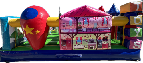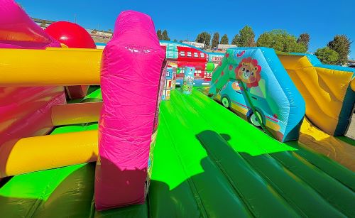 We do not recommend having different age range children simultaneously inside the bouncy. Adult supervision is needed at all times. To insure proper set up, we will need to know the surface the unit will be on and if there is any stairs that need to be used to get to the site location. Items on grass will be staked down, items on artificial grass or concrete will be held down by sandbags. (Additional $15 per unit)